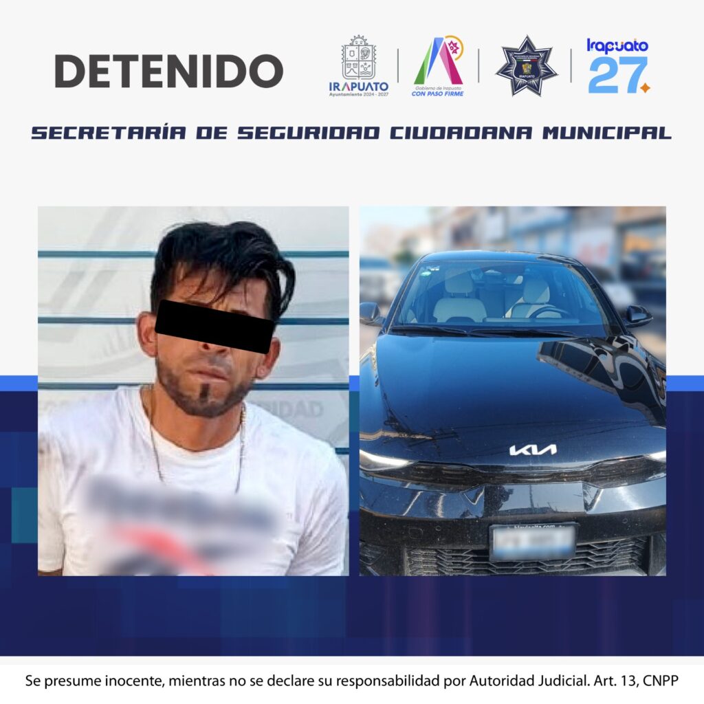 DETIENE POLICÍA MUNICIPAL DE IRAPUATO ASUJETO REINCIDENTE, CON UN VEHÍCULOROBADO EN SALAMANCA