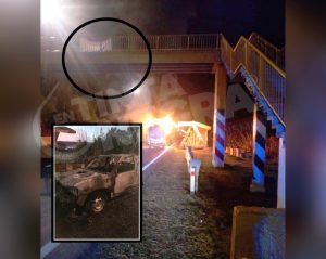 ABASOLO.- Hombres no identificados incendiaron una camioneta y colocaron una narcomanta en el puente peatonal…
