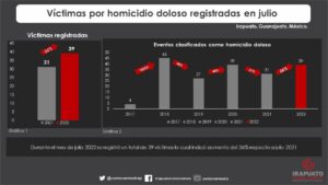 Irapuato.-Durante julio 2022 acorde a nuestro registro de víctimas por homicidio doloso existió recuento de…