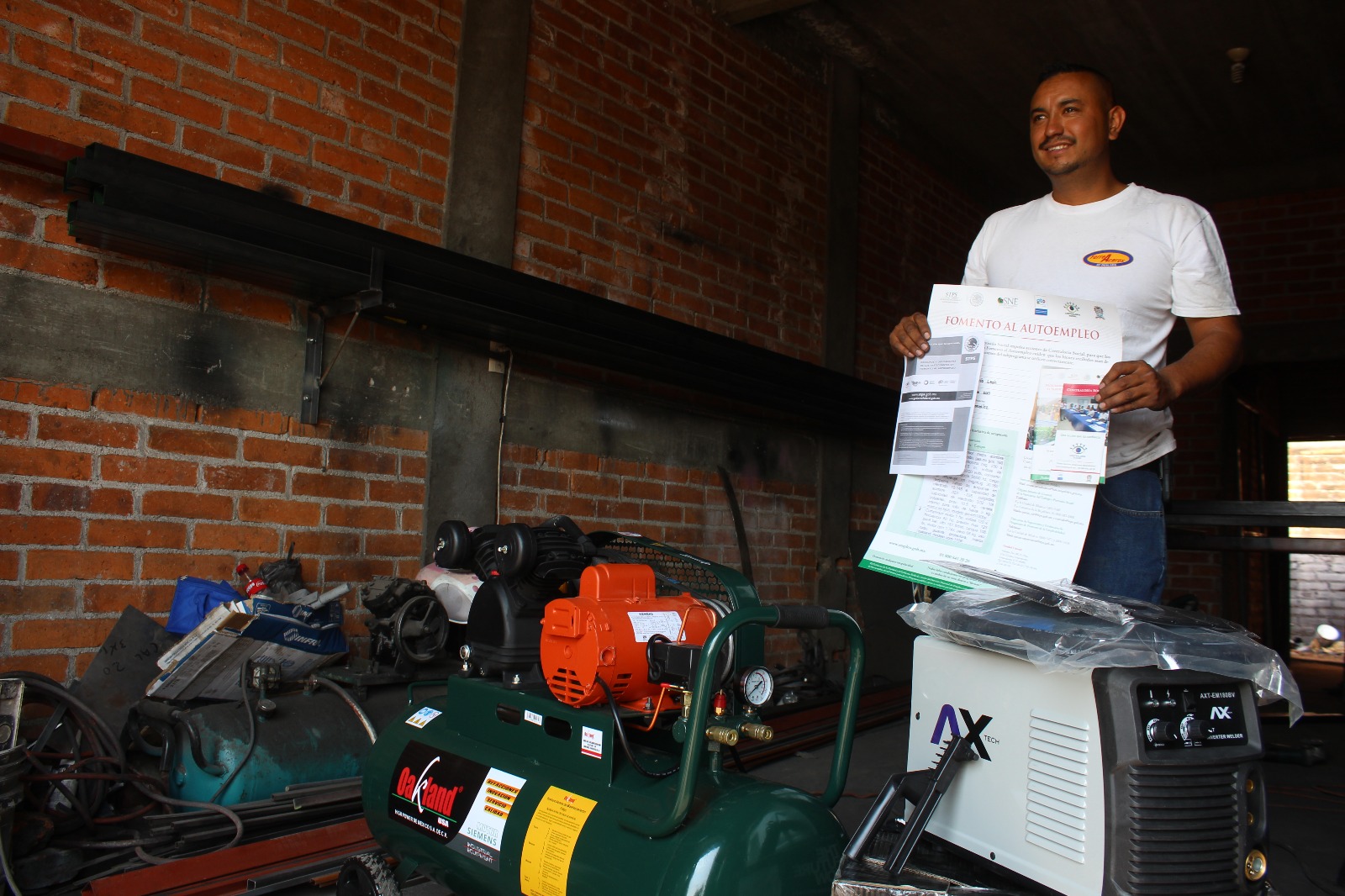 Las herramientas que fueron entregadas al beneficiario Cristian Yovanni León son: una soldadora y un compresor, mismos que ayudarán a desempeñar mejor sus labores y con lo cual podrá mejorar su nivel de vida.