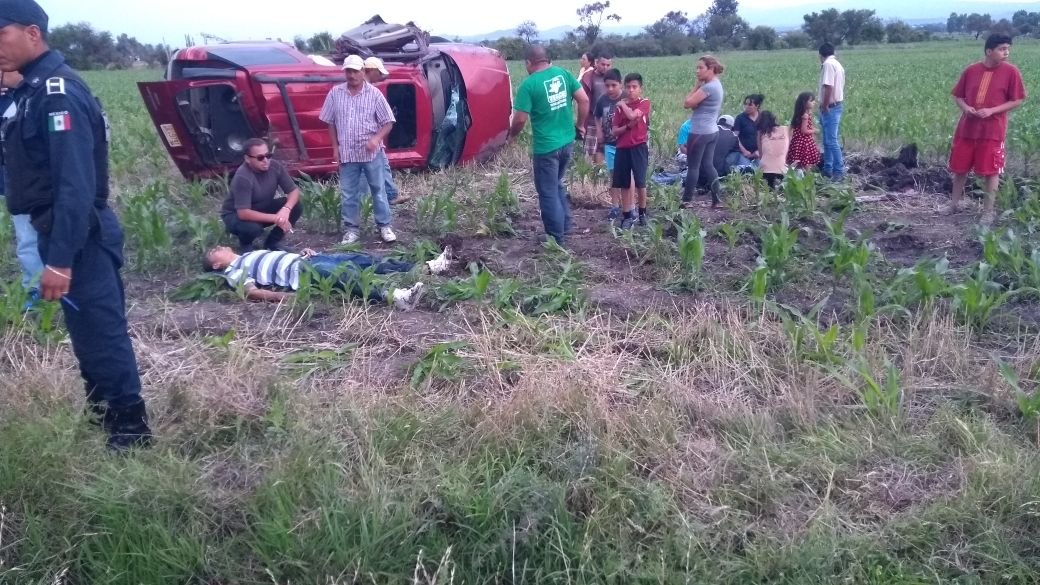 ABASOLO .- VOLCADURA EN LA PUEBLO NUEVO-HUANÍMARO; TRES HERIDOS
