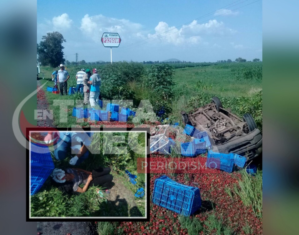 VULCA CAMIONETA CARGADA DE JITOMATE; UNA MUJER RESULTÓ HERIDA .-Abasolo