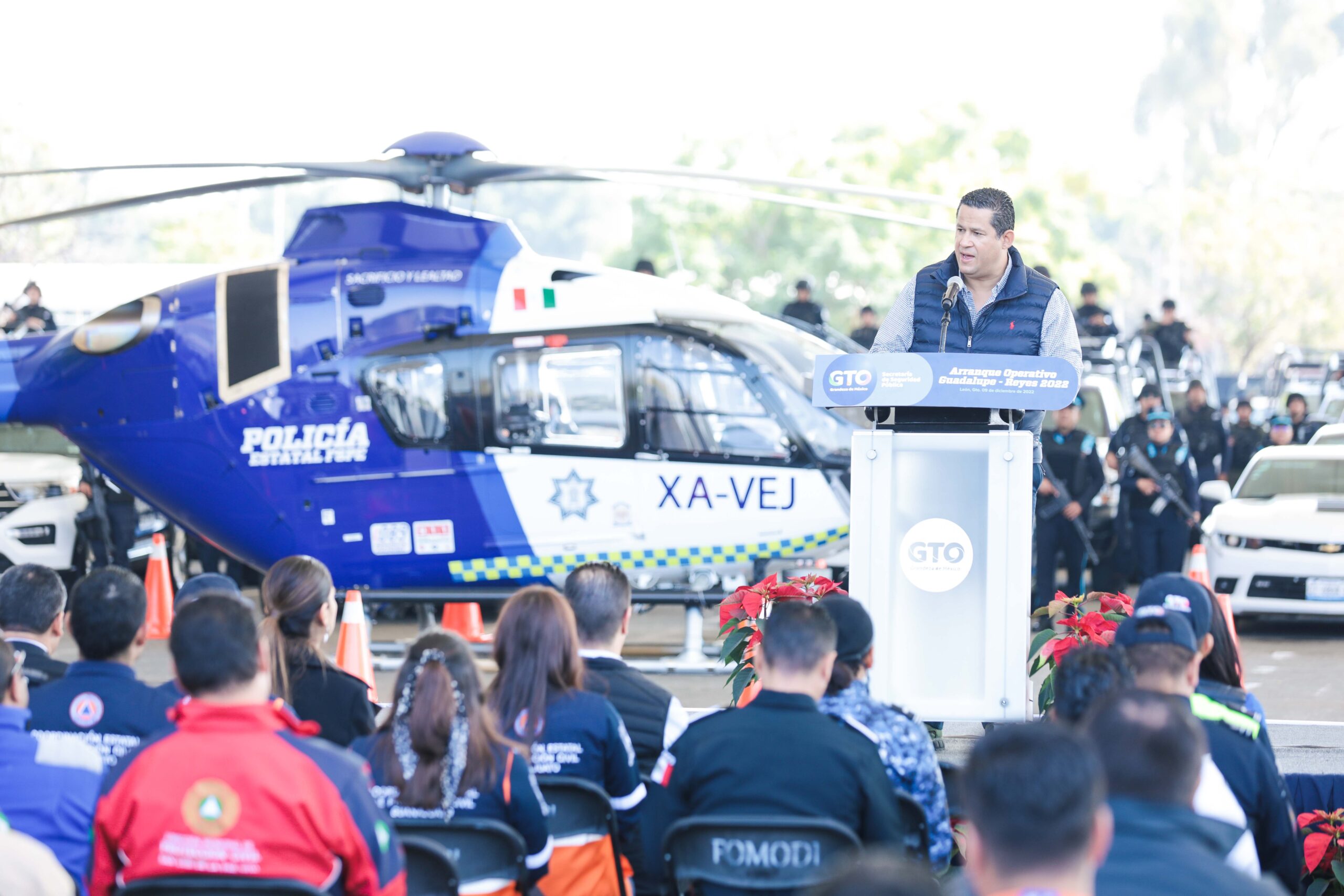 León, Gto., 08 de diciembre de 2022.- El Gobernador del Estado, Diego Sinhue Rodríguez Vallejo, dio el banderazo de arranque del Operativo Guadalupe-Reyes con el objetivo de salvaguardar la integridad física y el patrimonio de las personas, así como brindar un servicio preventivo a los visitantes que transitan por las carreteras de Guanajuato.