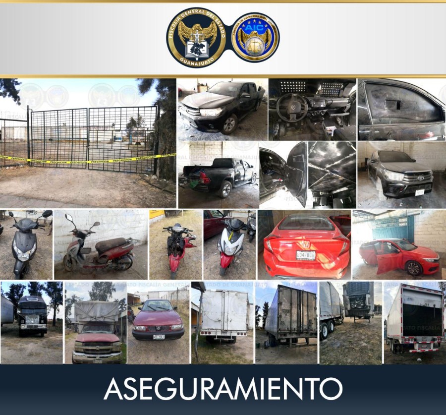 Los agentes investigadores y peritos se presentaron en el domicilio donde además aseguraron vehículos y motocicletas con reportes de robo vigentes.