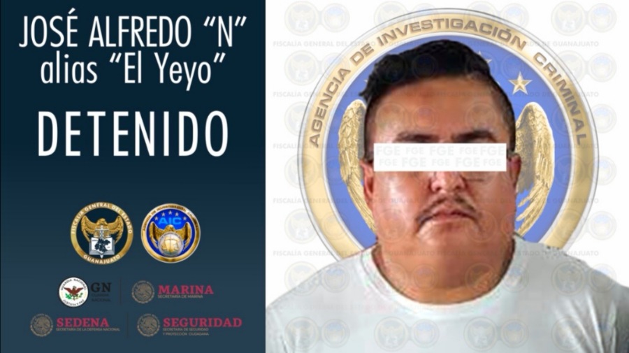 Agentes de Investigación Criminal de la Fiscalía General de Guanajuato, fuerzas federales y elementos de la homologa de Veracruz, se logró la captura de JOSÉ ALFREDO “N”, alias “El Yeyo” en el estado de Veracruz. Este sujeto, pertenecía a un grupo delincuencial que opera en la región Laja–Bajío.