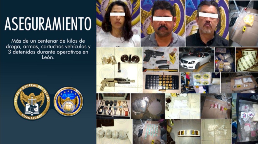 Como resultado de las pesquisas haciendo uso de tecnología en materia de análisis de información y trabajos de inteligencia en campo, desarrolladas por la Agencia de Investigación Criminal y la Fiscalía Especializada en Investigación de delitos de Alto Impacto, se obtuvieron datos de prueba que indicaron que en varios inmuebles en la ciudad de León, se encontraban sustancias ilícitas y otros objetos usados para comisión de delitos.