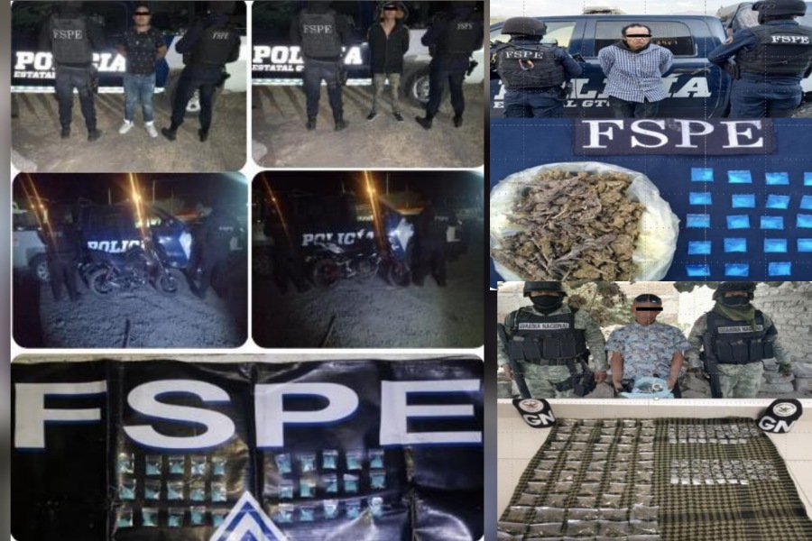 En tanto en el municipio de Comonfort, en la comunidad de Neutla, se realizó la detención de un masculino a quien se le aseguró 200 dosis de marihuana y 19 de droga sintética; en Salamanca se aseguró 300 dosis de marihuana, 23 de drogas sintéticas, 2 armas, 2 cargadores y 22 cartuchos útiles de diferentes calibres; y en el municipio de Juventino Rosas en la Comunidad Santiago de Cuenda se detuvo a un masculino con 700 dosis de marihuana, y en otro hecho, en la Comunidad de Rincón de Centeno se detuvieron a dos masculinos con 2 armas, 2 placas balísticas, 91 cartuchos y un vehículo.
