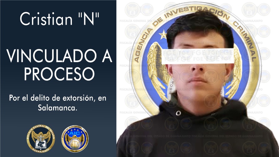 Tras su detención, el agente del Ministerio Público, al término de ley solicitó audiencia ante la autoridad jurisdiccional, donde fue presentado Cristian “N” y conoció los cargos criminales que el agente le imputó por la comisión de los hechos que la ley señala como delito de extorsión, sustentado en datos de prueba integrados en la carpeta de investigación, mismos que el juzgador consideró como suficientes para vincular a proceso penal al imputado, con medida cautelar de prisión preventiva.