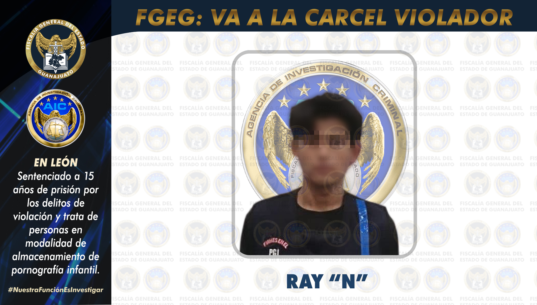León, Gto. 30 de octubre de 2021.- RAY “N” fue sentenciado a 15 años de prisión, culpable de los delitos de violación y trata de personas en su modalidad de almacenamiento de pornografía infantil; un Agente del Ministerio Público demostró plenamente que el sentenciado incurrió en las aberrantes conductas y obtuvo que pase tres lustros en la cárcel.