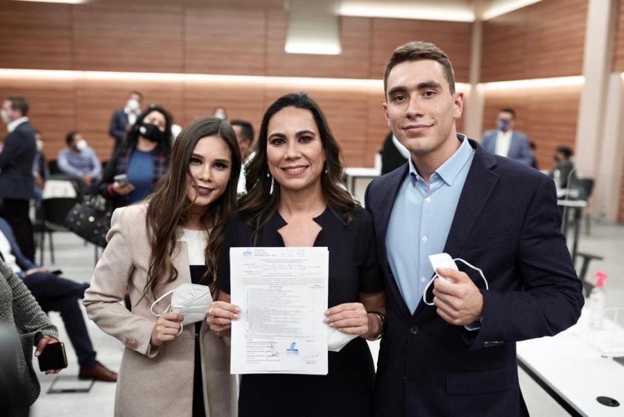 León, Gto.- a 18 de diciembre de 2020.- Acompañada de sus dos hijos y arropada de la militancia panista, así como del equipo que conformó como su planilla, llegó esta tarde Lorena Alfaro García a su registro como precandidata por el Partido Acción Nacional (PAN) para la Presidencia Municipal de Irapuato.