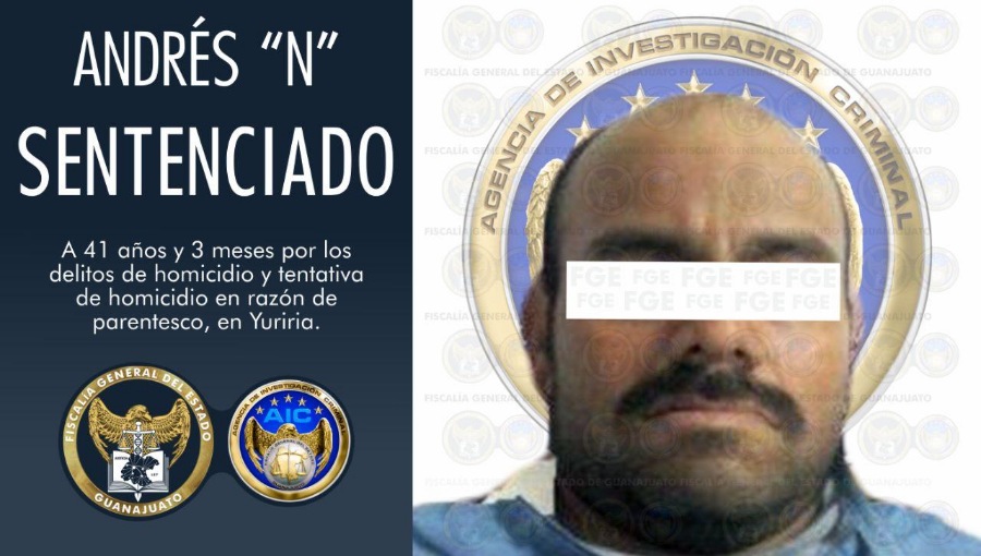 Yuriria, Gto. 02 de octubre de 2020.- Un agente especializado en litigación de la Fiscalía General del Estado, obtuvo que Andrés “N” fuera sentenciado a 41 años y 3 meses de prisión culpable del delito de homicidio en razón de parentesco y homicidio en grado de tentativa. Este sujeto sostuvo una discusión con su hermano, quien lesionó y privó de la vida a su padre quien trató de intervenir en favor de su hijo, en hechos ocurridos en la comunidad El Moral, de este municipio.