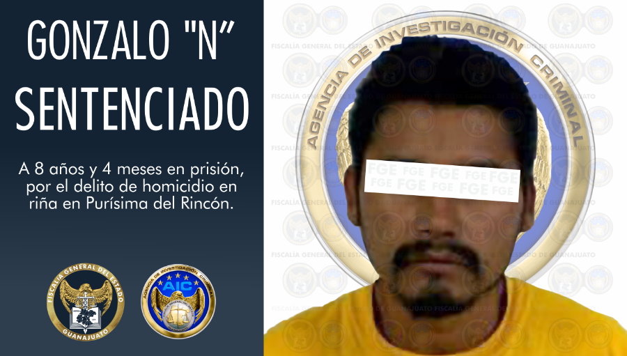 Purísima del Rincón, Gto. 15 de diciembre de 2020.- Tras las pruebas contundentes vertidas por el Agente del Ministerio Público especializado en litigación de la Fiscalía General del Estado durante un juicio, Gonzalo “N” alias “El Ratón” ha sido condenado a 8 años y 4 meses en prisión, al ser encontrado culpable del delito de homicidio en Riña en agravio de un hombre en la comunidad Pradera de Soto.