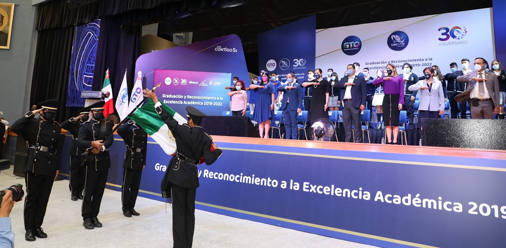 En este acto, el Gobernador encabezó la ceremonia de Graduación y Entrega de Reconocimientos a la Excelencia Académica de alumnas y alumnos egresados de la Generación 2019-2022 del CECyTE Guanajuato.