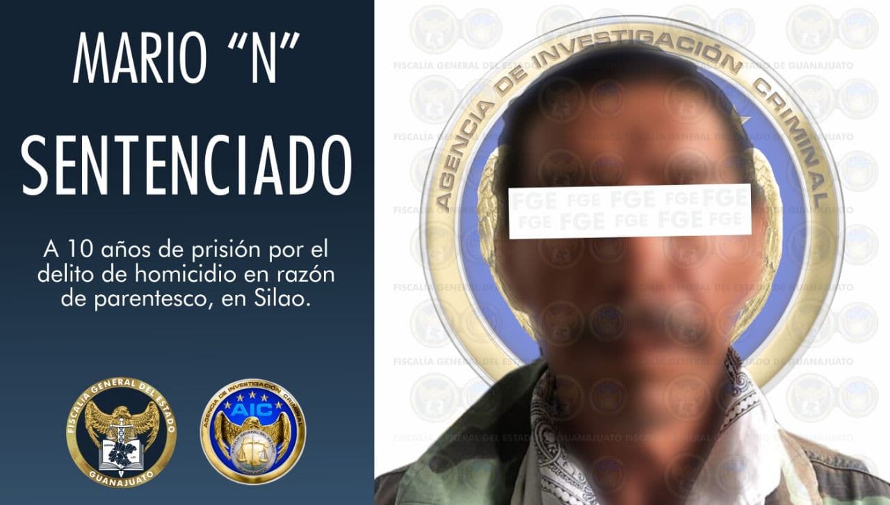 Silao, Gto. 09 de junio de 2021.- En procedimiento abreviado, Mario “N” fue sentenciado a pena privativa de libertad por 10 años, culpable del delito de homicidio en razón de parentesco. El Ministerio Público y la Agencia de Investigación Criminal, a través de sus áreas de especialización técnica y científica, llevaron a cabo las indagatorias, con el propósito de esclarecer los hechos delictivos de los cuales reconoció su responsabilidad el imputado.