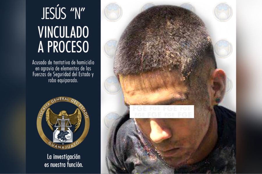 Celaya,Gto. 19 de julio de 2019.- En audiencia inicial, la cual se prolongó por varias horas, la Fiscalía General del Estado logró vincular a proceso a JESÚS “N”, de 18 años, acusado de tentativa de homicidio en agravio de elementos de las Fuerzas de Seguridad Pública del Estado y robo equiparado por la camioneta con reporte de robo en la cual viajaban el indiciado y EDGAR LEONARDO, fallecido en el lugar.