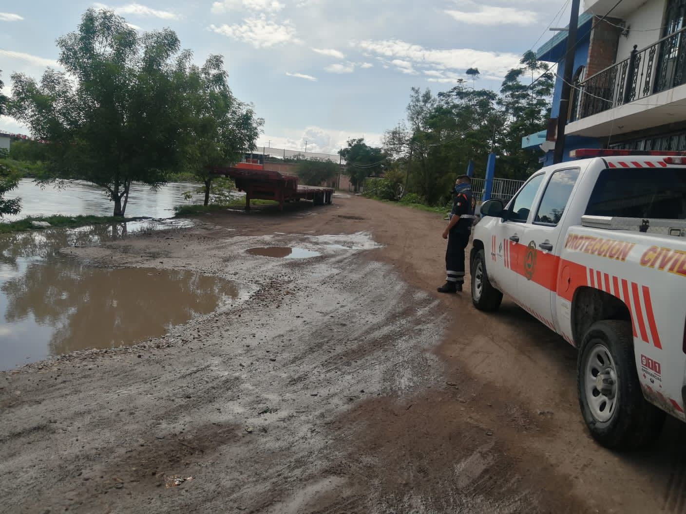 Desde los primeros reportes recibidos, personal de Protección Civil se encuentra analizando las afectaciones causadas por las fuertes lluvias registradas la noche del lunes, lo que provocó el desbordamiento del dren.