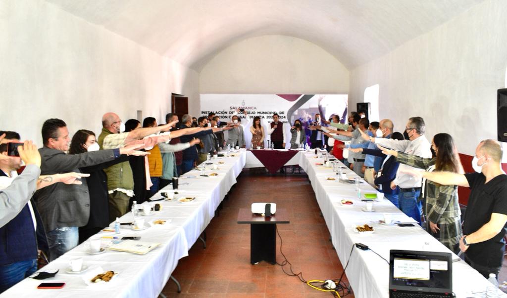 El Consejo Municipal de Protección Civil Salamanca 2021-2024 es encabezado por el presidente César Prieto y agrupa a representantes de instancias federales como Sedena, Conagua y CFE.