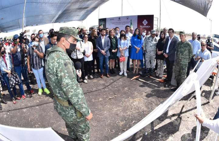 Salamanca, Gto; 07 de julio del 2022.- El Gobierno Federal da su respaldo a Salamanca como el corazón estratégico del país, con la construcción del cuartel para una coordinación de nivel batallón que albergará a dos compañías de Guardia Nacional y que dio inicio este jueves, en un evento en el que el agradecimiento y la esperanza fueron los sentimientos imperantes.