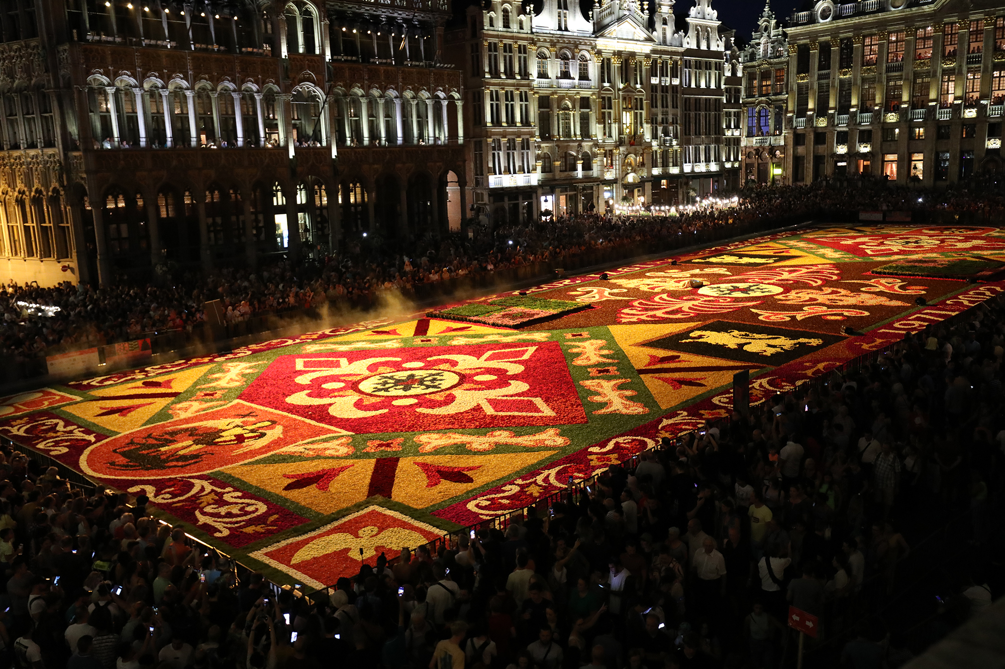 Esto forma parte de los festejos del Día de la Asunción, que este año se celebran del 12 al 15 de agosto, y voluntarios y especialistas del Arte Efímero mundial, se dieron cita en la Gran Plaza de Bruselas para crear esta magna obra.