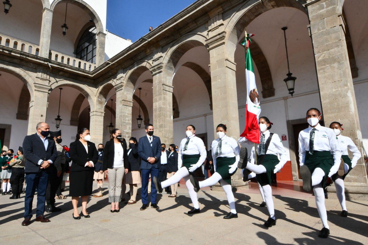 Irapuato, Gto. 24 de febrero del 2022.- Para conmemorar el Día de la Bandera de México, autoridades municipales y educativas, abanderaron a las escoltas de 31 escuelas de diversos niveles educativos, de zona urbana y rural, para fomentar el los valores cívicos y el orgullo por la patria.