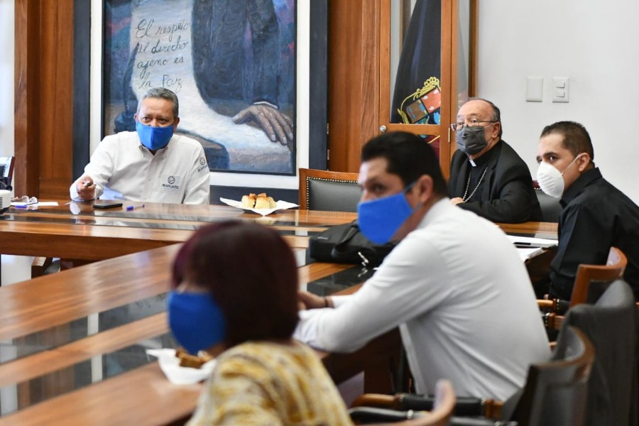 Ricardo Ortiz Gutiérrez, presidente municipal, presentó a integrantes de la iglesia católica, el Semáforo Estatal para la reactivación económica y actividades sociales, e invitó al Obispo a reforzar las medidas de prevención para disminuir riesgo de contagio por Covid-19.