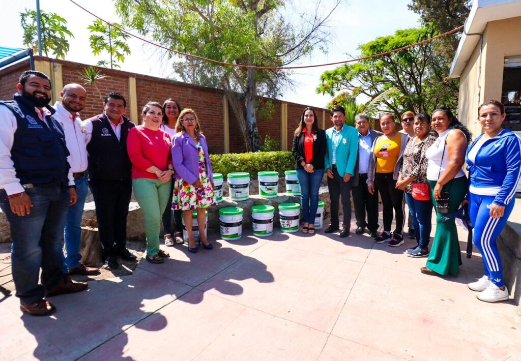 Irapuato, Gto. 24 de mayo del 2023.- Autoridades municipales entregaron pintura a directivos, docentes y estudiantes de la Telesecundaria número 645 de la comunidad Carrizal Grande, ante la petición de este insumo a la presidenta municipal, Lorena Alfaro.