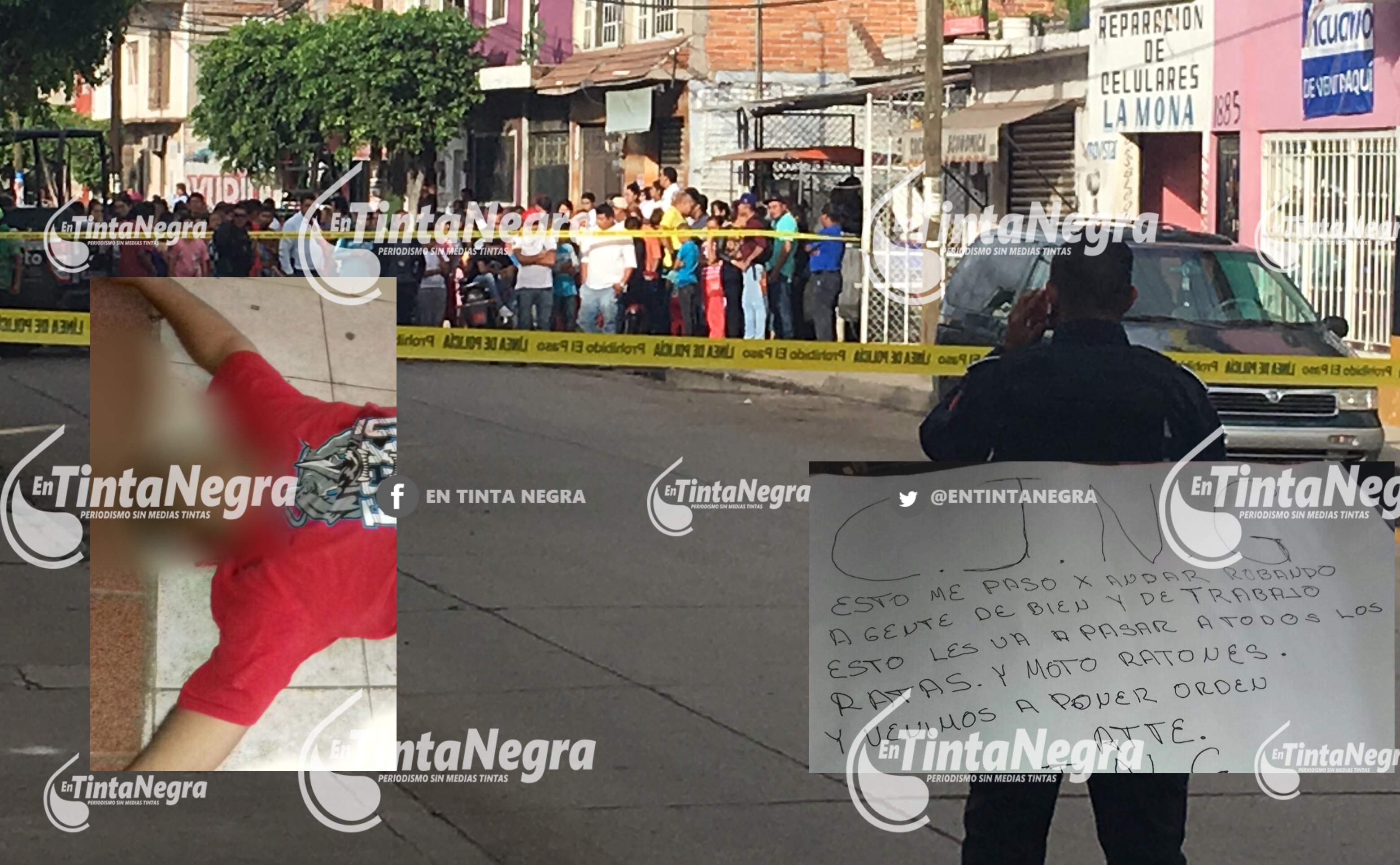 «Esto les va a pasar a todos los ratas y motoratones y venimos a poner orden» ATTE CJNG es un fragmento del mensaje que contiene la cartulina encontrada en el lugar.