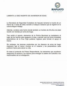 La Secretaría de Seguridad Ciudadana lamentó en su página de facebook lo ocurrido y condenó el ataque que le costó la vida al menor.