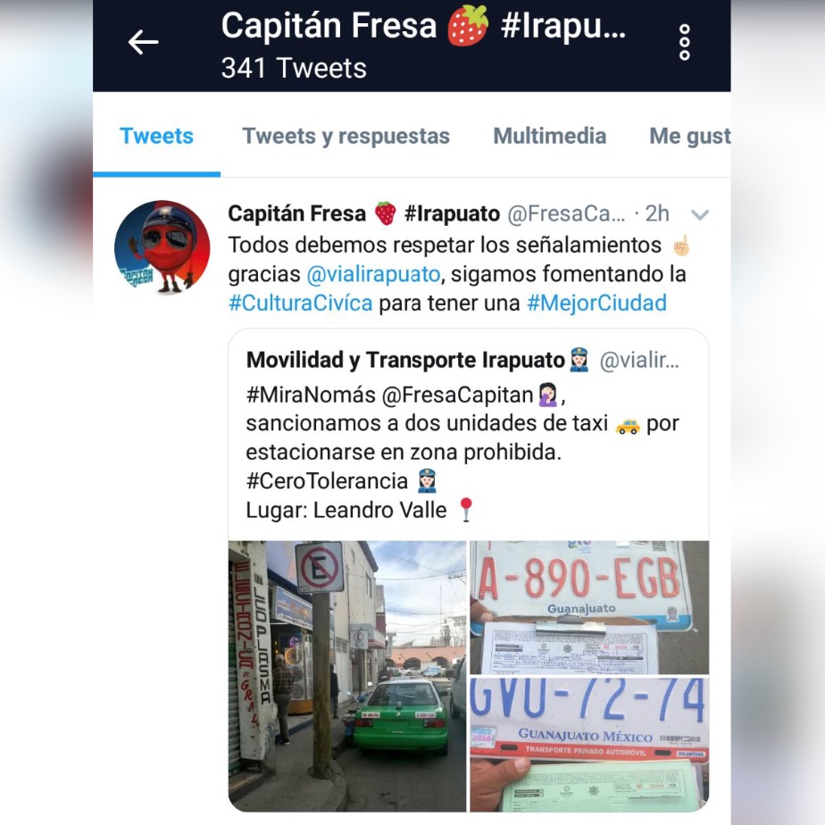 De esos 41 reportes, 28 fueron vía Twitter y 13 de Facebook bajo el hashtag #ReporteMiraNomás, #DenunciaMiraNomás o con la etiqueta del @CapitánFresa, @vialIrapuato e @IrapuatoGob.