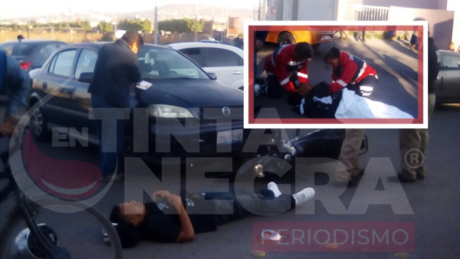 Irapuato.-Un hombre resultó herido de consideración al ser atropellado cuando viajaba en su motocicleta. Fue auxiliado por paramédicos de la Cruz Roja y trasladado al Hospita.