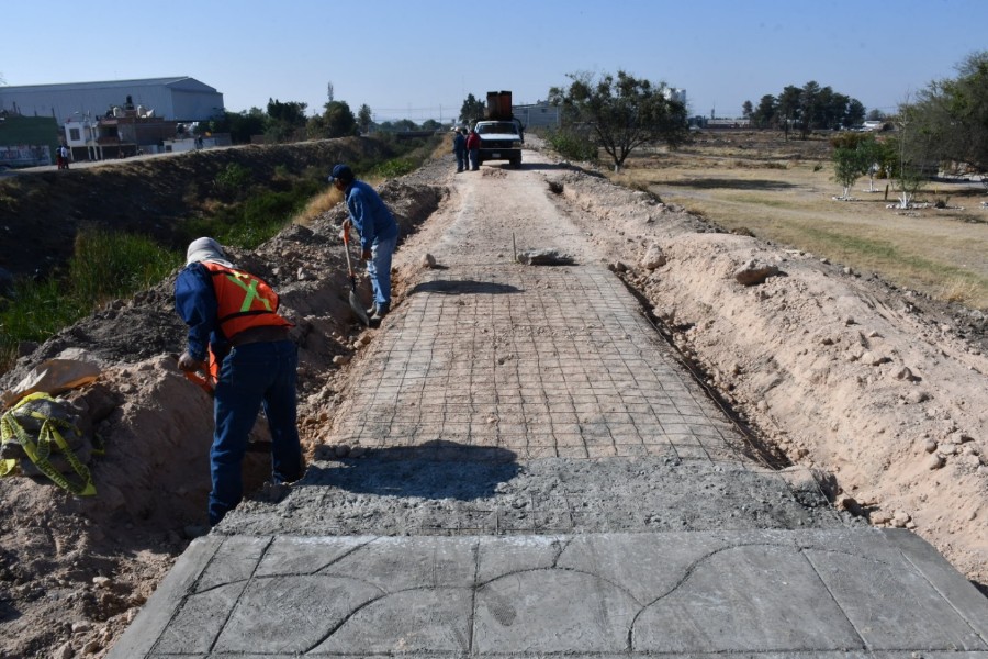 Irapuato, Gto. 20 de febrero de 2020.- Un avance del 40% registra la segunda fase de la construcción del Andador Bimbo. Se concluyó con trabajos de limpieza del tramo, despalme del terreno, construcción de una cama de tepetate y se procederá a la colocación del concreto, con lo que la obra alcanzará un 70% de avance.