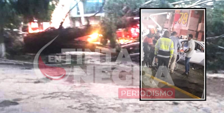Justo cuando pasaban cerca del monumento niños héroes el árbol se vino abajo por los fuertes vientos cayéndoles sobre la unidad motriz.