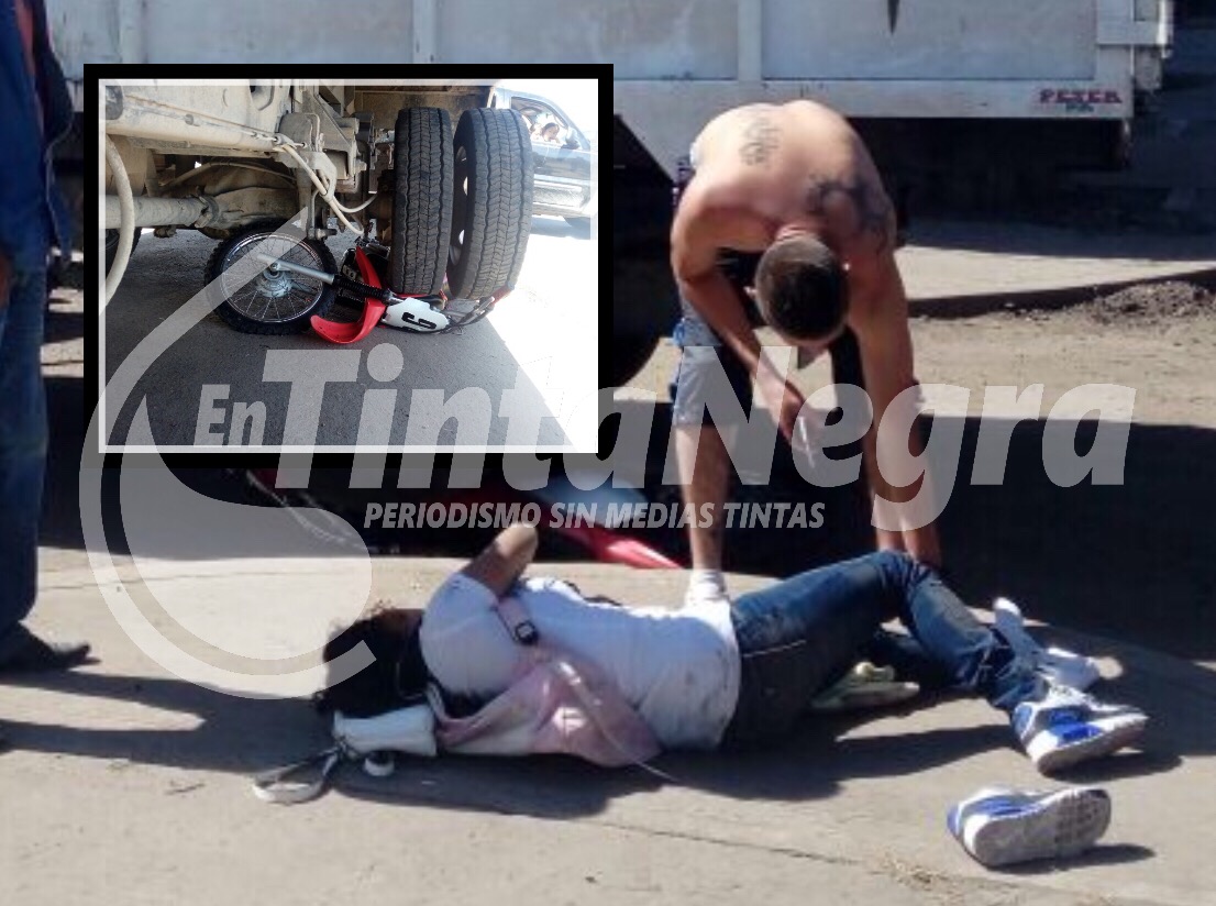 Los hechos ocurrieron este medio día sobre la prolongación Independencia cerca del fraccionamiento Altamira. Mientras la motocicleta quedó debajo de las llantas de la unidad, la muchacha salió disparado metros distantes.