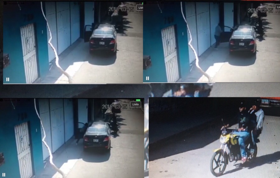 En el justo momento que la mujer logra subir al carro color negro, el copiloto de una moto color amarillo, desciende y con pistola en mano se dirige hacia su víctima.