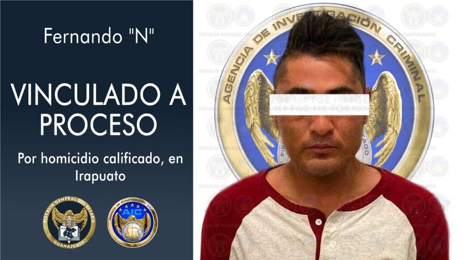 Irapuato, Gto. 14 de octubre de 2020.- Un hombre que privó de la vida a una mujer, al interior de su domicilio fue vinculado a proceso y permanece en prisión preventiva. Fernando “N” es probable responsable del delito de homicidio calificado con premeditación y ventaja en agravio de Berenice “N”.