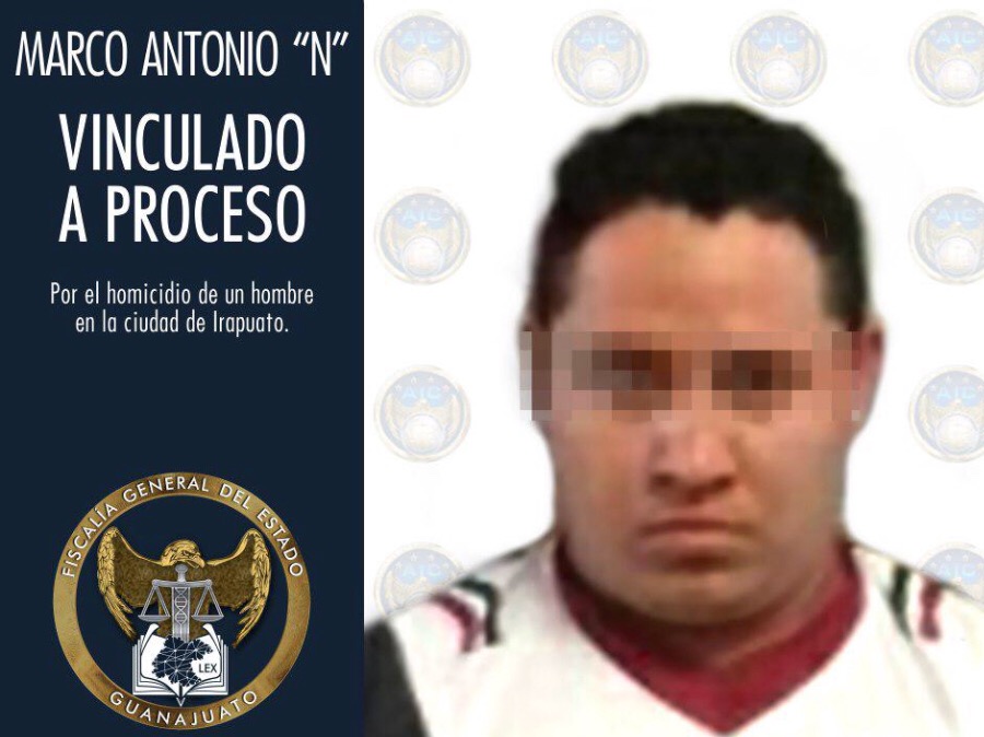 Irapuato, Gto. 13 de julio de 2019.- La Fiscalía General del Estado (FGE) formuló imputación a MARCO ANTONIO “N” y obtuvo de un Juez, que fuera vinculado a proceso penal, por la comisión del delito de homicidio cometido en agravio de un hombre a quien privó de la vida con arma de fuego en la ciudad de Irapuato.