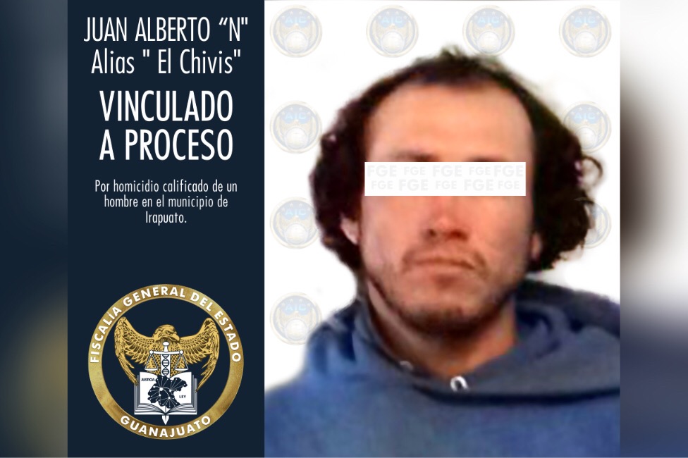 Irapuato, Gto. 26 de julio de 2019.- Juan Alberto alias “El Chivis” ha sido capturado por la Fiscalía General del Estado, como imputado en el homicidio de un hombre a quien privó de la vida a golpes el pasado 18 de marzo en el municipio de Irapuato; se encuentra en prisión enfrentando la justicia.