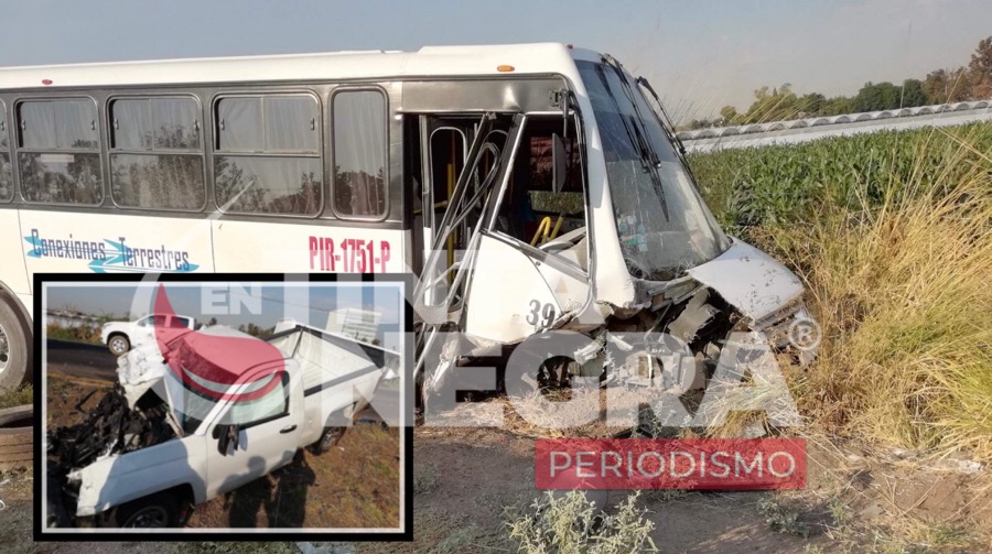 Irapuato.-Un camión de transporte de personal se impactó esta mañana contra una camioneta particular, dejando como saldo un herido y daño materiales.