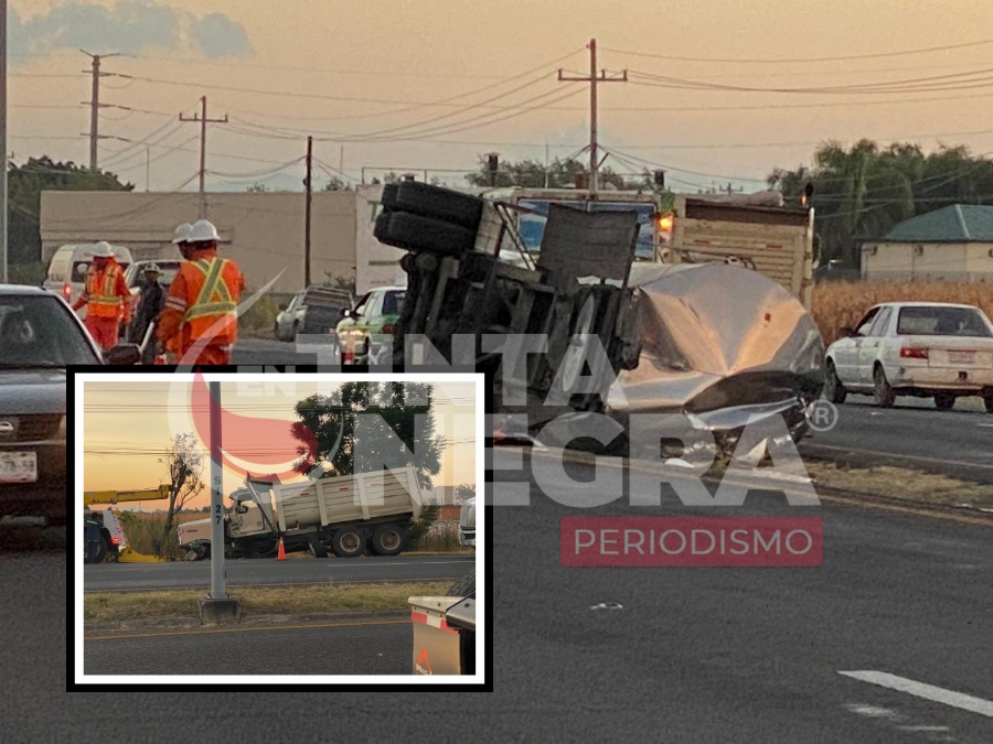 Irapuato.- El choque volcadura entre una tolva y una pipa provocó la movilización esta mañana de los cuerpos de emergencia.