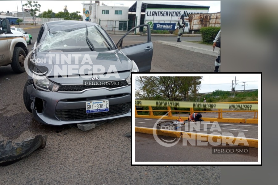 Irapuato .- Un hombre que conducía su bicicleta murió atropellado por un vehículo cuyos tripulantes en su huída volcaron en la glorieta de acceso a la colonia las Carmelitas.