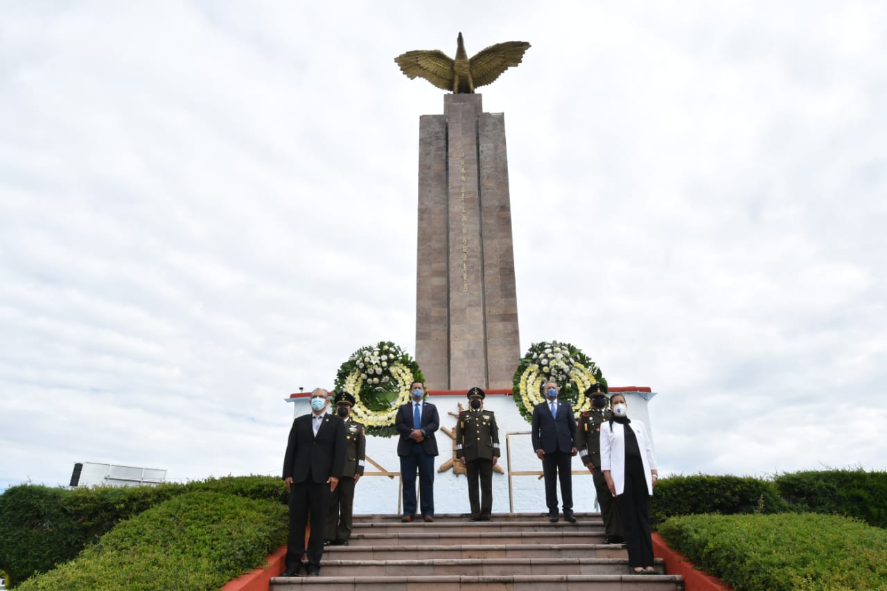 El presidente municipal, Ricardo Ortiz Gutiérrez, en compañía del gobernador del estado, Diego Sinhue Rodríguez Vallejo, demás autoridades estatales y del Ejército Mexicano, encabezaron la guardia de honor en el monumento a los Niños Héroes.