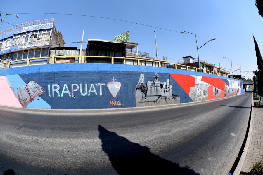 El artista urbano compartió que este mural muestra también la Historia de la Ciudad como un homenaje a las y los irapuatenses, quienes han forjado con su trabajo el desarrollo del municipio.