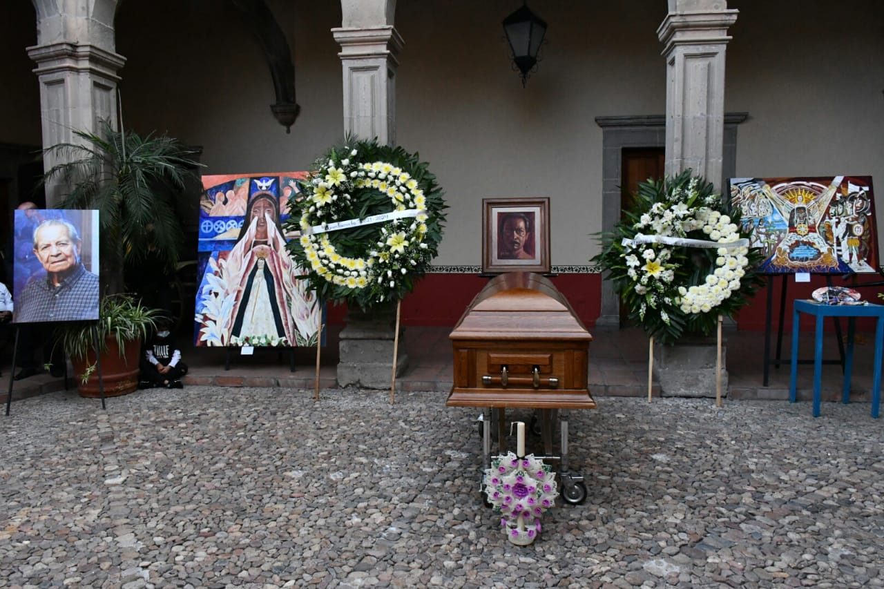 En el Museo Salvador Almaraz, familiares, amigos, autoridades municipales y estatales, se rindió una Guardia de Honor este 11 de marzo, para despedir al artista irapuatense, quien el pasado noviembre de 2021, alcanzó los 91 años de edad.