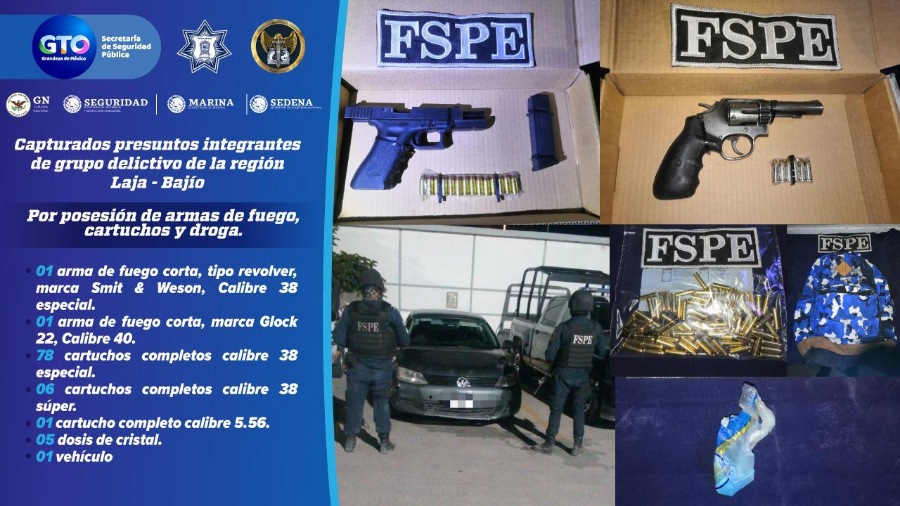 Estas detenciones las llevaron a cabo las Fuerzas de Seguridad Pública del Estado de la SSPE, Agencia de Investigación Criminal de la FGE con el apoyo de SEDENA, Marina y Guardia Nacional, como parte de los patrullajes permanentes que se mantienen en Celaya y la región Laja-Bajío.