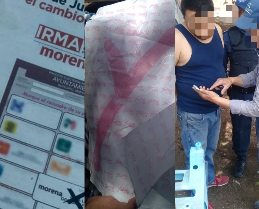 Tanto el individuo, como el papel y las bolsas resguardado ha sido presentados ante las autoridades correspondientes, derivado que al realizar campañas electorales o sugerir votar por algún partido o candidato, se encuentra prohibido y constituye una presunta comisión de un delito durante los tres días anteriores a la elección del 1 de julio, pues se considera a este periodo de tiempo como veda electoral.