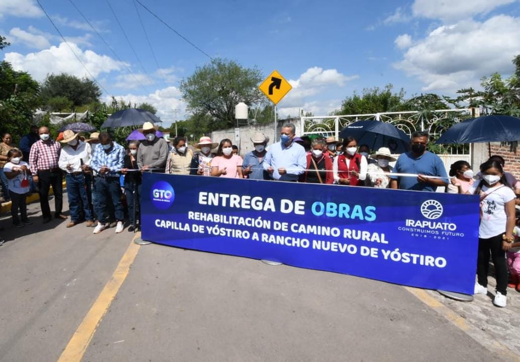 Irapuato, Gto. 06 de octubre del 2021.- Para mejorar la movilidad y disminuir tiempos de traslado, autoridades locales inauguraron el camino que conduce de la comunidad de Capilla de Yóstiro a Rancho Nuevo de Yóstiro, ubicadas al sur del municipio.