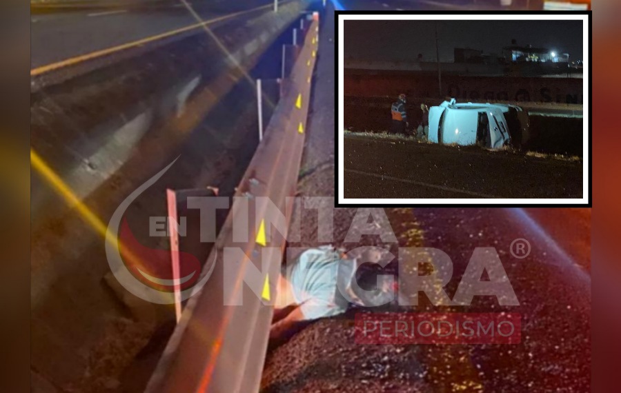La volcadura se registró minutos después de las 21:00 horas frente a la Central de Abastos. El chofer resultó lesionado y el automóvil quedó volcado sobre la cuneta central.