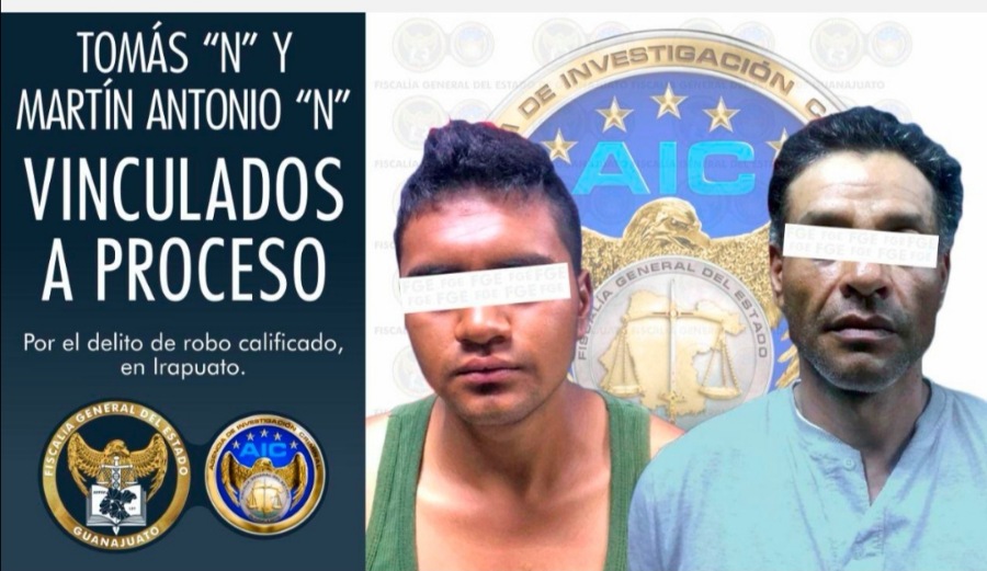 Irapuato, Gto. 22 de septiembre de 2020.- La Fiscalía General del Estado judicializó una investigación por el delito de robo calificado, cometido con violencia. Tras cumplimentar orden de aprehensión en contra de Tomás “N” y Martín Antonio “N”, los imputó y solicitó vincularlos a proceso por su probable responsabilidad al desapoderar de su motocicleta a una conductora, el pasado 15 de septiembre.