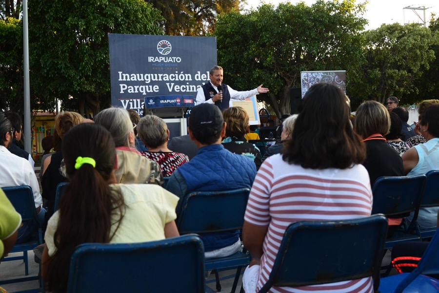 IRAPUATO; GTO. – MIÉRCOLES 21 DE FEBRERO DEL 2018.- Al entregar a las familias del fraccionamiento Villas El Dorado su nuevo parque vecinal, el Alcalde Ricardo Ortiz Gutiérrez, ratificó el compromiso para crear más de 50 parques de este tipo con recursos ahorrados en el programa de austeridad, pues destacó que hay nuevos presidentes de colonos y de participación ciudadana, que demandan la dignificación de sus espacios para la convivencia y el sano esparcimiento de las familias irapuatenses y los hijos.