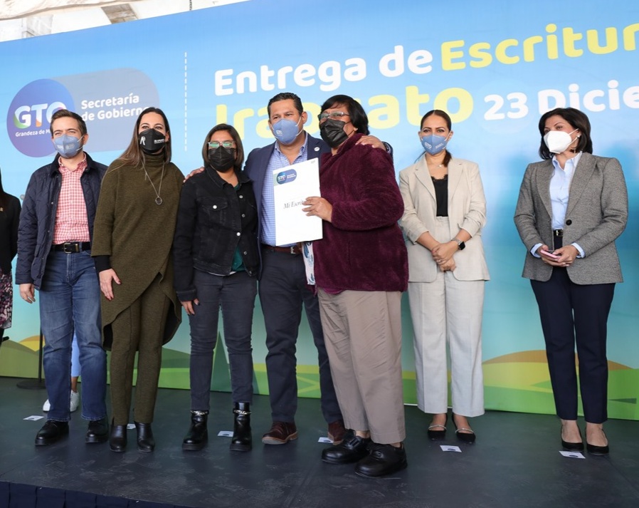 Este día 136 familias irapuatenses recibieron de manos del gobernador Diego Sinhue Rodríguez Vallejo, la presidenta municipal Lorena Alfaro García y la secretaria de gobierno Libia Denisse García Muñoz Ledo, la documentación que los acreditan como propietarios de su vivienda.